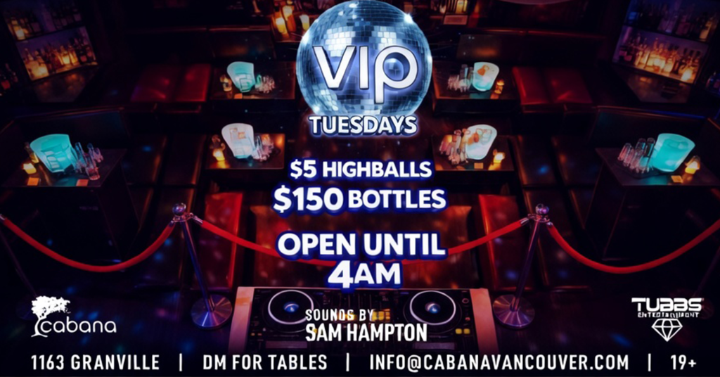 Open til 4 am$5 HighBalls, $150 Bottles, with sam hampton on sound